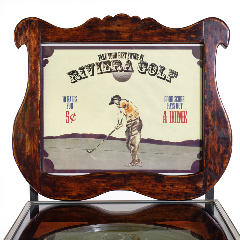 PM Pinball Machine, Riviera Golf model, produced by an unknown manufacturer associated with the pre – war period; it is assumed that it can be placed between the 1933 and the 1936- Payout machine.