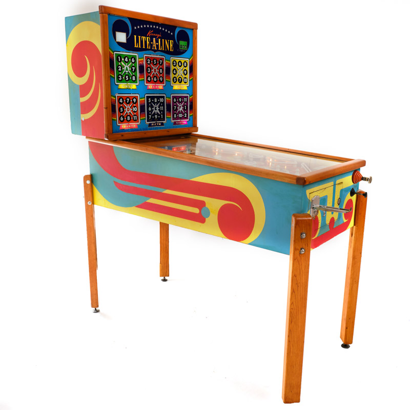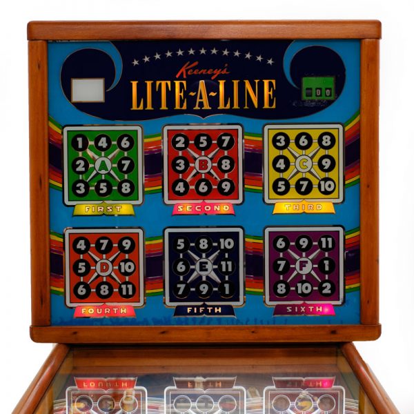 EM electromechanical Pinball Machine, Lite a Line model, produced by Keeney in 1951- Flipperless – Woodrail – the game works the same way the Bingo does
